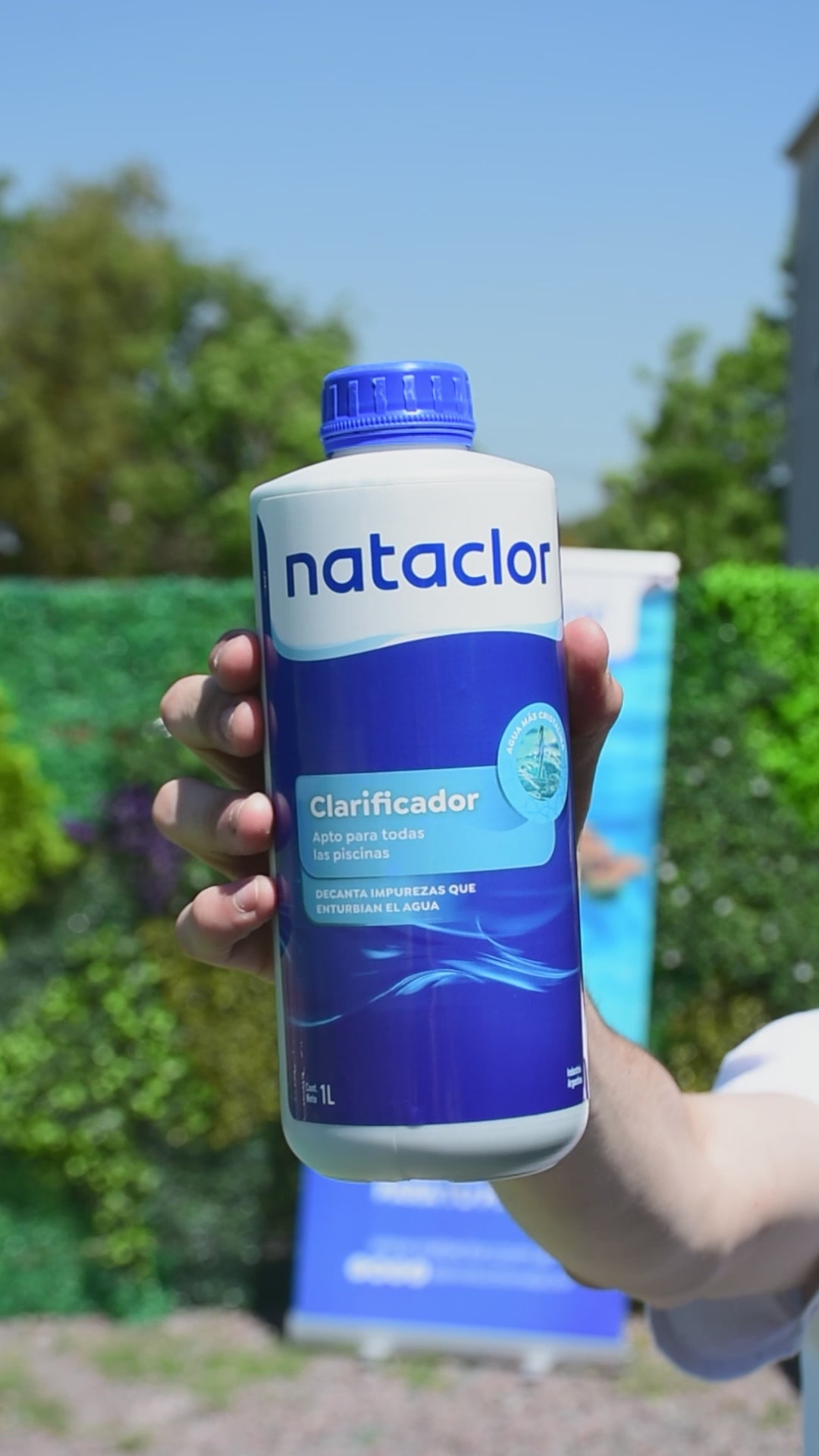 El Clarificador Nataclor decanta impuresas. Su acción floculante ayuda a mantener el agua cristalina. Aglomera las partículas suspendidas en el agua, depositándolas en el fondo para ser removidas fácilmente por el limpiafondo.